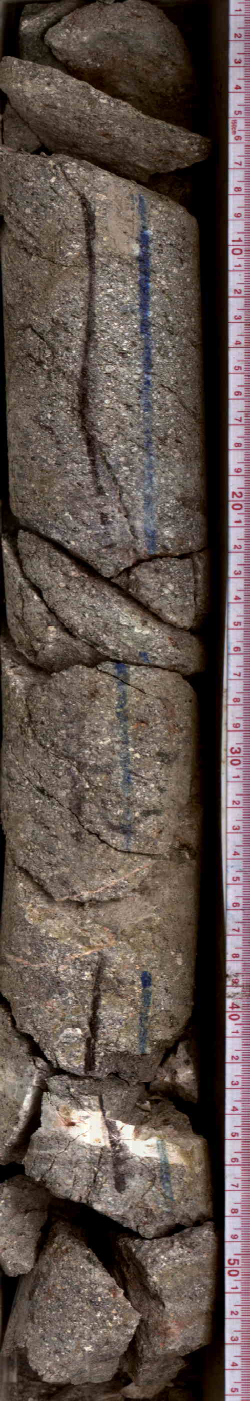 clay green veins crosscutting the breccia wi